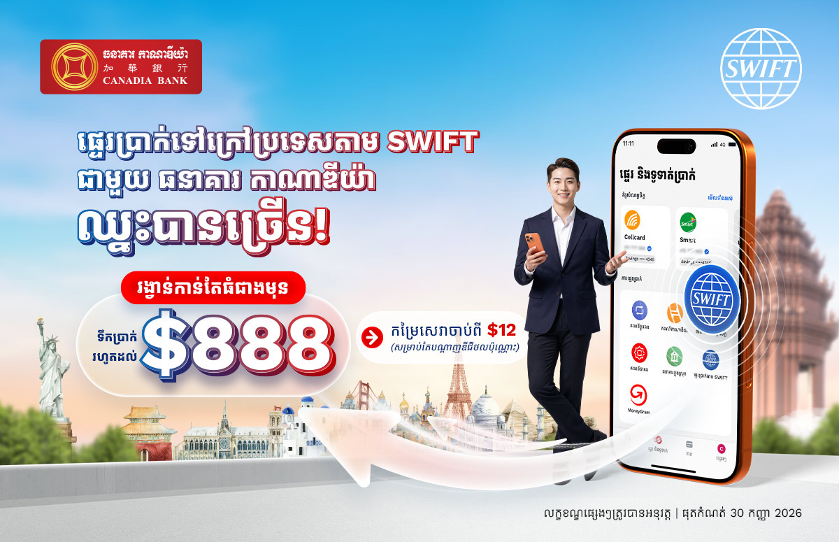 2. Lucky Draw: All individual customers who complete an Outward Telegraphic Transfer (OTT) are automatically entered into the lucky draw. This applies to any amount or currency made through all channels, including the Canadia Bank App, and over-the-counter.